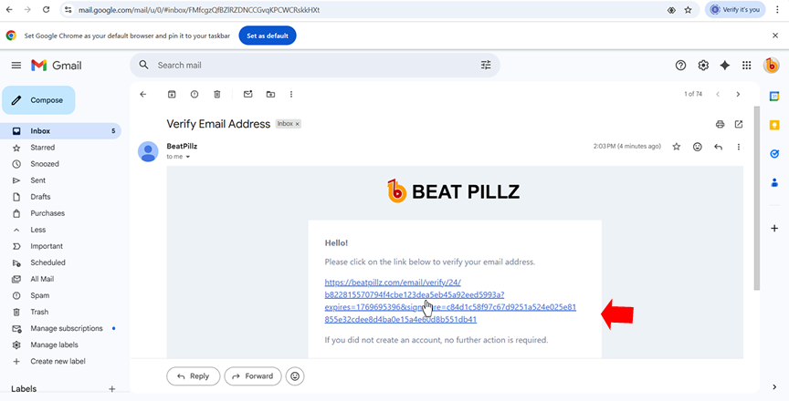 4. Click the link to verify your email, if you do not see the verification email in your inbox, check your spam